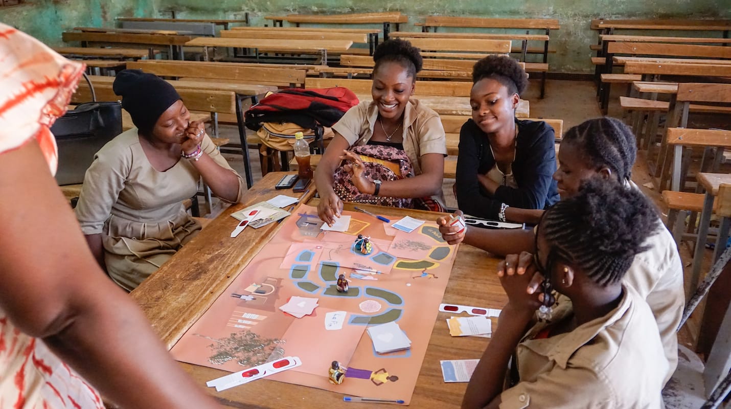 In Burkina Faso, we partnered with Pathfinder International as part of the (re)solve project to design a board game for high school students called La Chance. As they play, girls encounter real-life relationship scenarios, “experience” consequences, and are prompted to share advice. Going through this experience with their classmates, players can begin to understand that other girls like them are both at risk for unplanned pregnancy and can make the choice to access and use FP methods. Players may pick “advice” cards which ask them to provide guidance to other girls on how they should manage difficult relationship situations, or to educate friends that simply knowing and tracking your menstrual cycle may not protect you from pregnancy. We designed the game cards so that players read questions aloud to the rest of the group, and then reveal answers that are visible only with a pair of decoder glasses. This ensured that girls were being engaged as advisors, rather than only listening to messages from authoritative game facilitators. At the end of the game, girls are given multiple “passport” booklets to encourage them and their friends to visit health facilities.