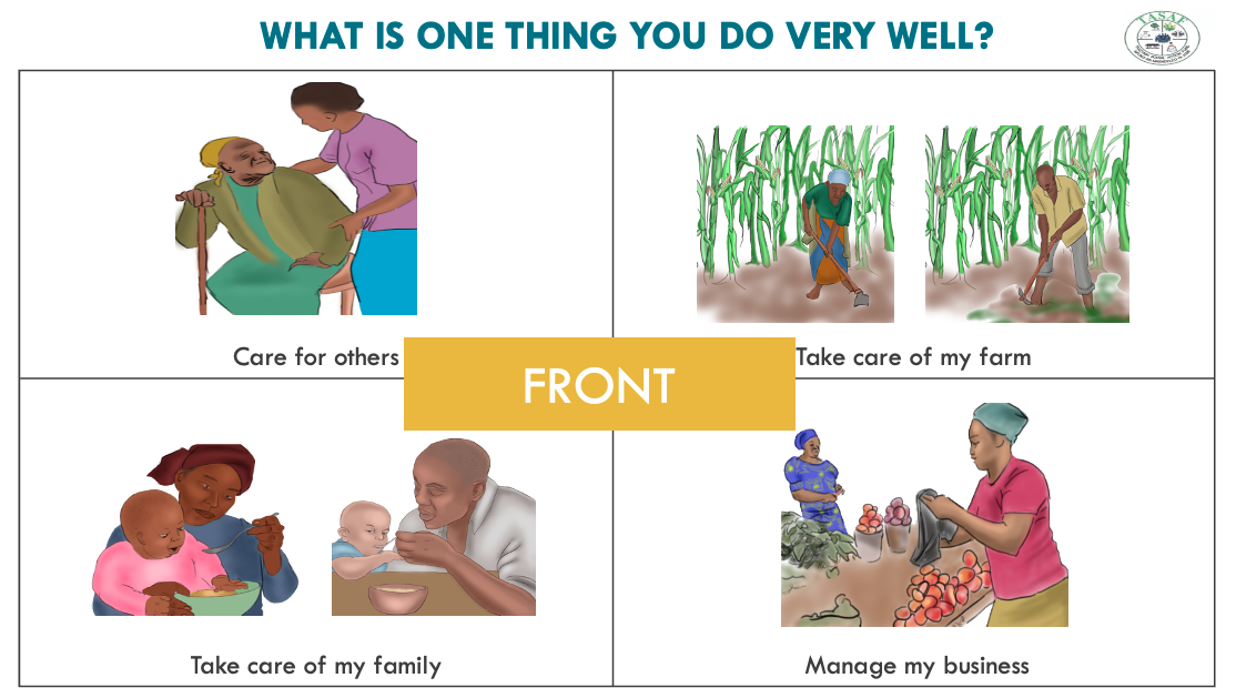 Self-affirmations: Created image cards to help recipients reflect on their values and skills to cultivate a positive mindset and reinforce that they can make a difference in their families' lives.