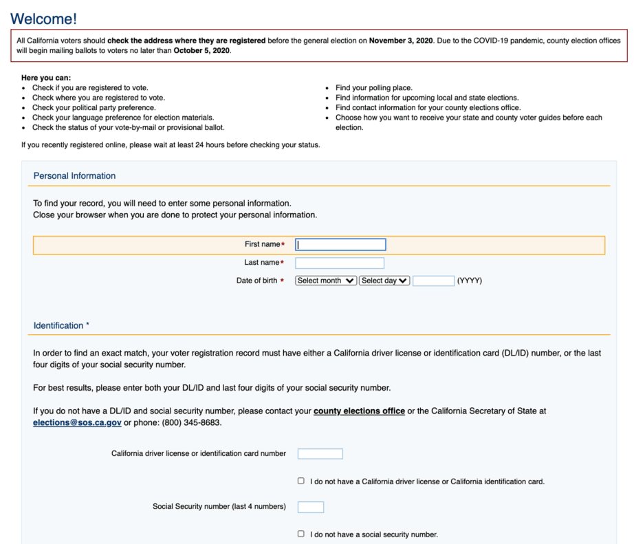 Be transparent: This page explains the reason for hassles that may give voters pause, such as requests for sensitive personal information.